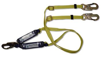 4-1/2’ to 6’ Shock Absorbing lanyard features Y-leg construction for 100% tie-off and utilizes 1” polyester webbing for resistance to UV light and abrasion. Also features double-locking snap hooks at the attachment and anchorage ends. Dual shock absorbers provide an extra measure of protection in the event a fall takes place while both legs are tied off.
