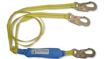 6’ Shock Absorbing lanyard features Y-leg construction for 100% tie-off and utilizes a continuous length of 1” polyester webbing for superior strength, durability and resistance to UV light and abrasion. Also features double-locking snap hooks at the attachment and anchorage ends.
