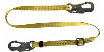 4-1/2 to 6’ Positioning lanyard features single-leg construction and utilizes 1” polyester webbing for resistance to UV light and abrasion. Also features double-locking snap hooks at the attachment and anchorage ends.