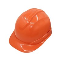 This unvented cap-style hard hat is orange HPPE (High-Performance Polyethylene) material which is lightweight with weather and chemical resistance. The reversible six-point EZ-click adjustable ratchet suspension with a replaceable sweatband (HH-A