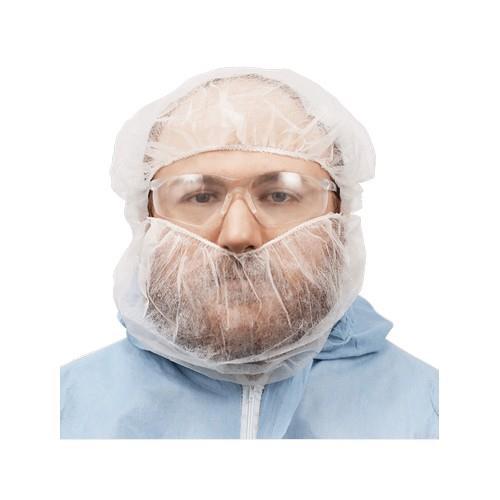 These non-woven beard covers grant protection against non-hazardous dry particles. They are constructed with white, 10-gram polypropylene material.