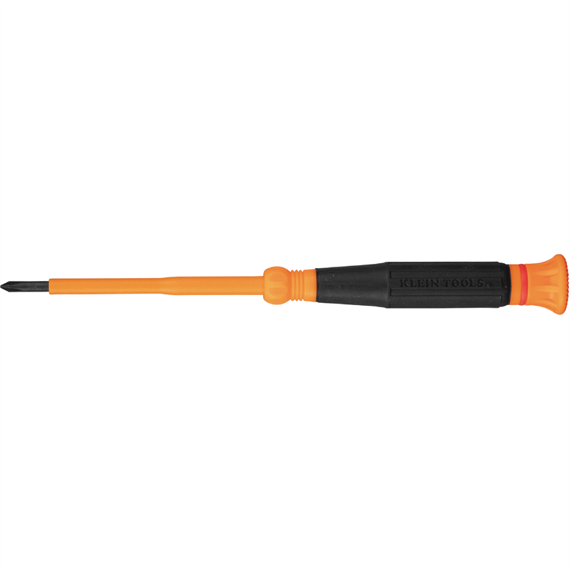 Designed for precision work, Klein's electronics screwdriver features a rotating cap for optimum control. The #0 Phillips Insulated Precision Screwdriver is made of the highest quality tempered steel, carefully heat-treated for maximum strength, and precision ground to fit screw openings securely. Klein's exclusive Cushion-Grip™ handle offers outstanding comfort and control.