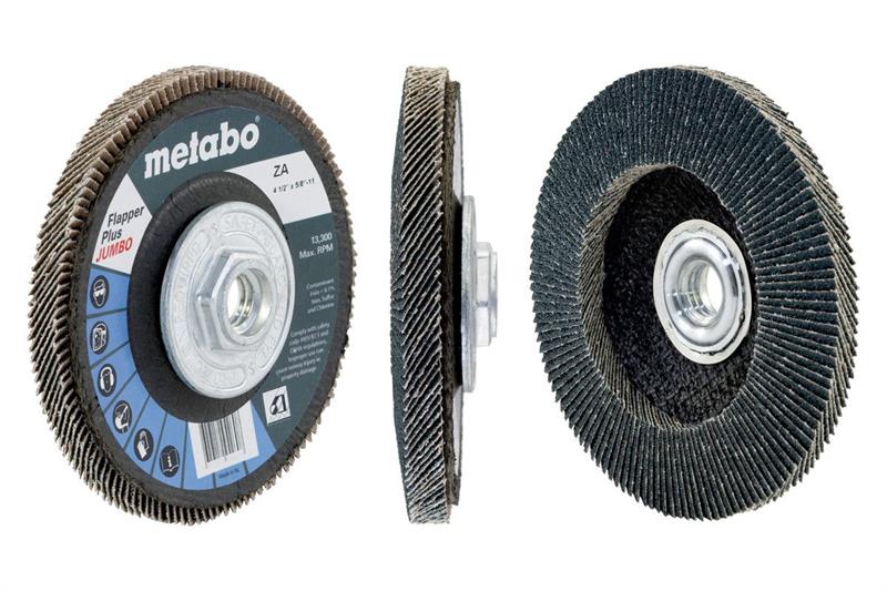 The Metabo Flapper Plus JUMBO is designed for aggressive material removal, offering long life and versatility. With 62% more flaps, it ensures high-performance grinding on steel, stainless steel, and heat-sensitive materials
