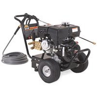 1-inch powder coated steel tube handle for easier handling · Solid steel axle · Pneumatic tires with tubes for longer life · Dual rubber isolators · Powder coated and welded steel base plate · Convenient gun/wand holder and hose wrap