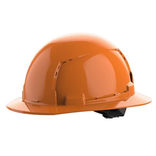 For More Information on the BOLT™ Orange Full Brim Vented Hard Hat w/4pt Ratcheting Suspension(USA)- Type 1, Class C,