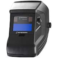 Welding helmet with automatic shade cartridge with shade selection from 9 - 13 infinite adjustable by an adjustment knob; with off-delay switch dark to light ''fast'' or ''slow'' Packaging: 10 pcs / unit