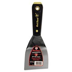 Professional quality wall scraper features a stiff, precision ground, high-carbon steel blade for durability. Solvent-resistant nylon handle withstands years of use. Lacquered handle & blade offer rust protection. Brass-plated steel head is ideal for setting drywall nails. Blade Width: 3"; Blade Material: High-Carbon Steel; Handle Material: Nylon; Handle Color: Black.