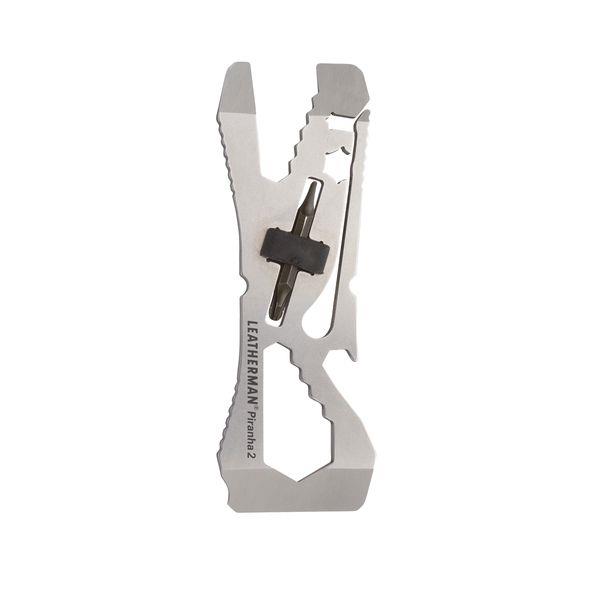 The Piranha 2 is a single-piece, multi-purpose pocket tool constructed from heat-treated, 100% stainless steel. A built-in rubber bit holder secures a Leatherman bit. Like the fish for which it's named, the Piranha pocket tool will help you get the job done quickly: tightening screws, loosening bolts, prying things open and popping the top on your favorite beverage. And, since you'll barely notice this super slim multi-tool in your pocket, it's perfect for everyday carry. It's also TSA-compliant so there is no need to worry about it when you board your next flight.