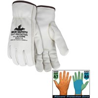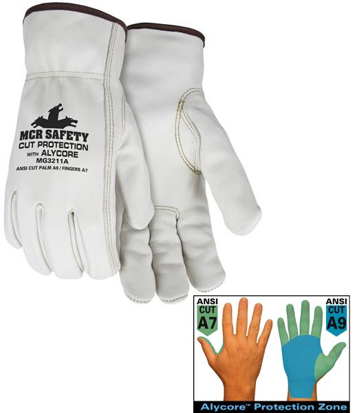 Alycore™ is one of the most cut and puncture resistant materials available. Our Alycore™ gloves offer maximum dexterity and sense of touch due to the high degree of flexibility and patent pending construction. All Alycore™ styles provide cut performance levels, which exceed ANSI and CE cut level 5 ratings. From wranglin' to buildin', these gloves are tough for the job! Cowhide is the most commonly used leather due to availability. Characteristics include a good balance between abrasion resistance, dexterity, durability and comfort. The MG3211A drivers gloves feature; unlined select cow grain leather, shirred elastic back, cotton hemmed, a keystone thumb pattern, and Alycore™ in the palm and fingers (see protection zones).