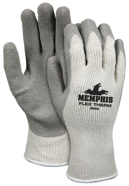 Flex Therm options give you all of the benefits of our Flex Tuff series of gloves, but with the addition of Thermal protection! The 9690 is made of a an acrylic/polyester/cotton string knit shell with a gray latex palm coating. With these gloves you can get a grip on staying warm!