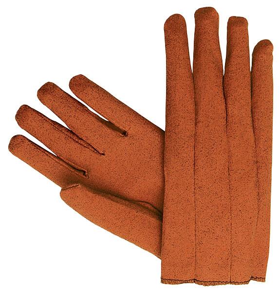 Cut and sewn vinyl impregnated gloves provide basic protection. The 9800 & 9810 series features russett color clute pattern and a slip-on cuff.