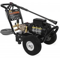 JP-1502-2ME1 Take your pressure washer indoors to clean floors and prep all kinds of surfaces. This is the perfect tool for food and beverage processing facilities where fumes and smoke are prohibited. Contractors love it for its versatility. Pump: Nickel plated brass manifold · Thermal and safety relief valves · Low pressure detergent injector Motor: Totally enclosed fan-cooled electric motor · 35-foot power cord with ground fault circuit interrupter (GFCI) Frame: Powder coated steel frame and base plate with 1-1/4-inch tube handles · Convenient gun/wand holder and hose wrap · 10-inch flat-free tires Unit Includes: Variable high/low pressure nozzle · 25-foot x 3/8-inch non-marking high-pressure hose with quick connects · Professional-grade insulated trigger gun with safety lock-off Pump accepts incoming water up to 175°F