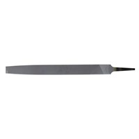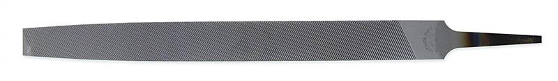 The Nicholson flat hand file has a rectangular shape with double-cut American pattern teeth on both sides for smoothing and shaping straight surfaces. The file tapers slightly toward the point in width to ease access into slots. It has double-cut American pattern teeth on each side for rapid material removal and single-cut teeth on the edges for finishing, sharpening, and deburring. The tang can be used with an optional handle for secure gripping (sold separately).