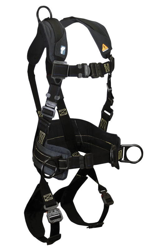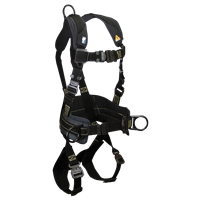 Features premium overmolded alloy steel dorsal and hip D-rings, quick-connect leg and chest buckles and mating buckle belt and torso adjusters