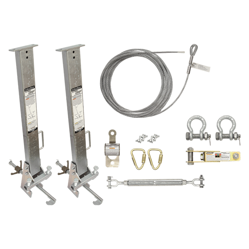 SteelGrip® Temporary Cable HLL System and Stanchions with 18" beam clamps